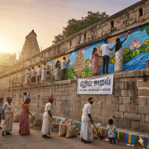 Madurai, the city of temples and traditions, is now writing a new story — a story about cleanliness and pride. The Madurai City Corporation has launched a special campaign called “Ezhil Koodal,” which means “Beautiful Madurai.” The goal? To make the city look neat and bright again by removing thousands of unauthorized posters and advertisements that have covered its walls for years.